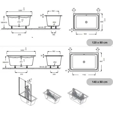 La baignoire bain douche Capsule compacte de la dimension de votre choix