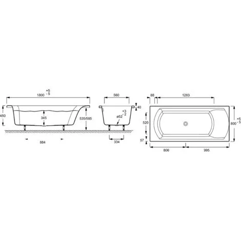 Caractéristiques techniques de la baignoire droite 180 x 80 Ove Jacob Delafon