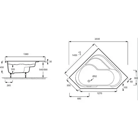 Baignoire bain douche version gauche ( espace douche et évacuation à gauche)