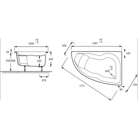 Baignoire bain douche version gauche ( espace douche et évacuation à gauche)