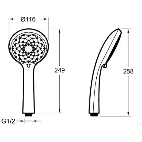 - Douchette : 3 jets, 110 mm de diamètre pour la couverture.