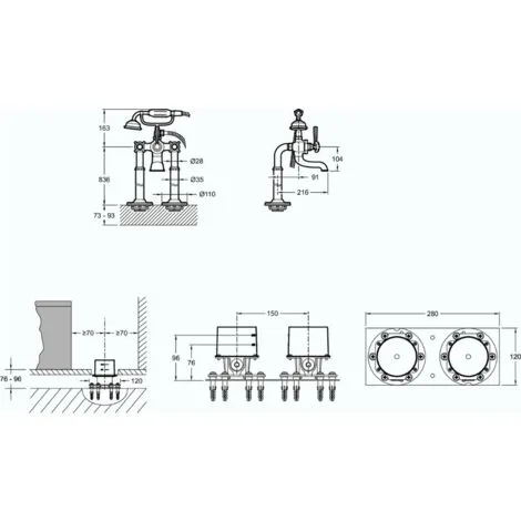 Caractéristiques techniques du pack mélangeur au sol et son corps encastré nickel brossé Cleo Jacob Delafon