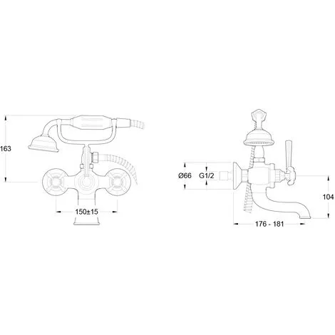 Débit (L/mn sous 3 bars) : douchette 9L/mn – bain 25L/mn