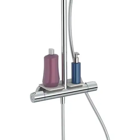 Dispose d’une tablette pour poser les flacons de douche.