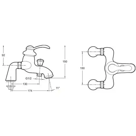 Longueur entraxe (longueur entre les supports de fixation) : 150 mm