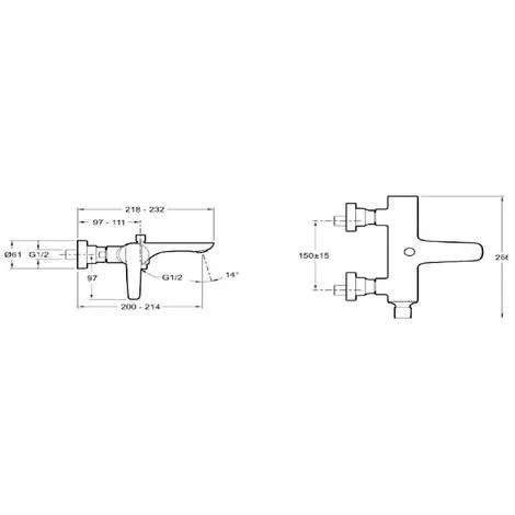 Entraxe : 150 mm (+ ou – 15 mm)