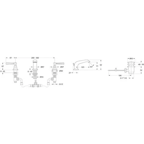 Caractéristiques du mélangeur 3 trous pour lavabo Cleo Jacob Delafon