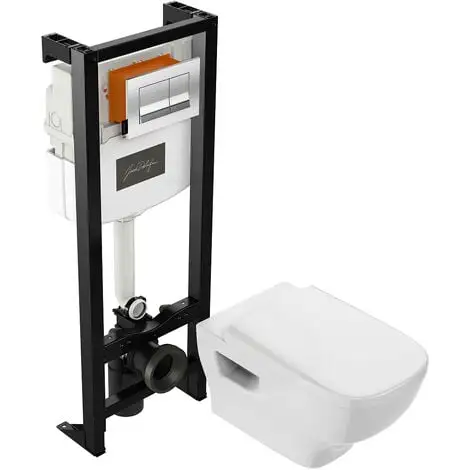 Pack wc complet : Cuvette suspendue + abattant FDC + bâti support autoportant + plaque chromée