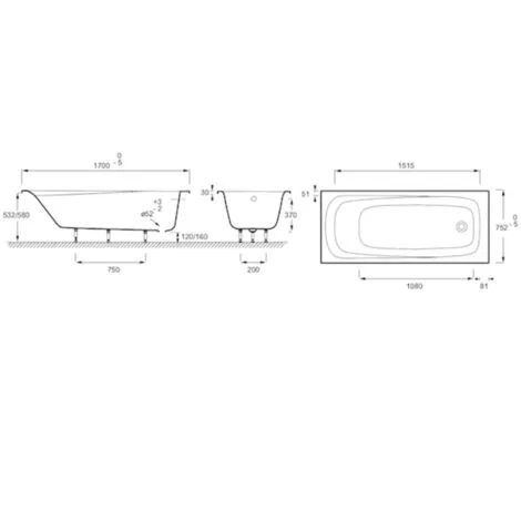 Caractéristiques techniques du pare-bain 1 volet pivotant noir Struktura Jacob Delafon