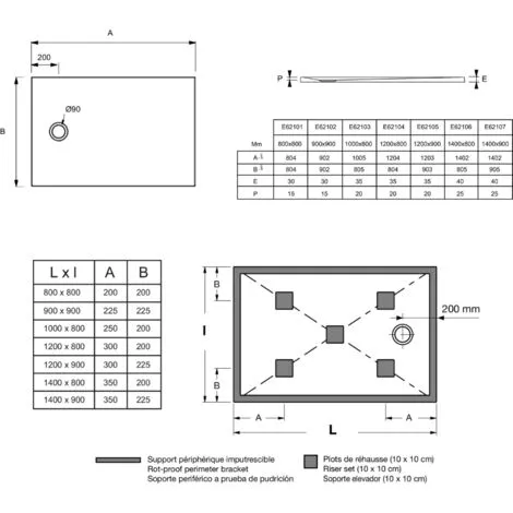Receveur Jacob Delafon Brive 90 x 90 cm / référence : E62102-00