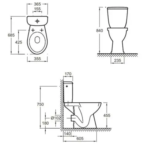 Caractéristiques du pack wc au sol surélevé Jacob Delafon Brive