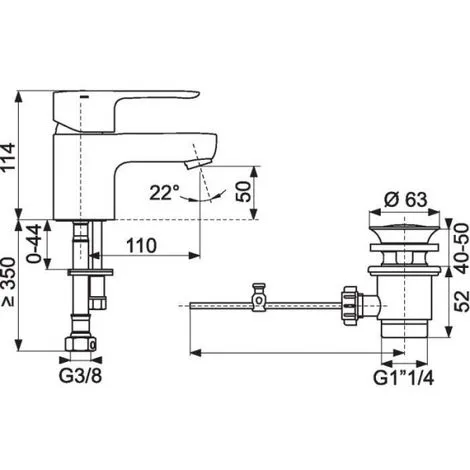 Caractéristiques : Type : Mitigeur – Norme : NF E0 C2 A2 U3 – Désignation : Mitigeur lavabo – NF : 1 – Nombre de pièce : 1