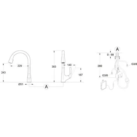 Caractéristiques du mitigeur évier Jacob Delafon Forte avec douchette et détection électronique